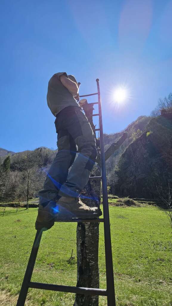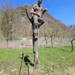Durante la giornata, siamo stati accompagnati da alcune persone care che hanno reso il lavoro ancora più piacevole. Giulia e la mamma ci hanno osservato con curiosità, raccogliendo qua e là qualche primula, mentre Andrea, Sara e il piccolo Lorenzo sono venuti a trovarci. Mentre Sara e Lorenzo si sono goduti la calda giornata nei prati della Canera, Andrea si è messo subito al lavoro, aiutandoci a pulire i rami potati e a applicare il mastice e il bendaflex. È stato bello condividere questi momenti di fatica e di soddisfazione, con il sostegno di chi ci vuole bene.