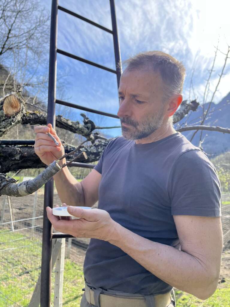 Era da qualche tempo che cercavo di capire meglio la pratica dell’innesto. Mi incuriosiva il modo in cui le piante potessero essere combinate per creare nuove varietà e migliorare i frutti. E così, un po’ per passione e un po’ per desiderio di imparare, ho cominciato a osservare più da vicino gli alberi da frutto nei prati della Canera. Ogni ramo, ogni fioritura, ogni potatura mi raccontava una storia di cura e di pazienza. La curiosità cresceva, alimentata dalla voglia di comprendere i segreti che si nascondono dietro a questa arte antica.