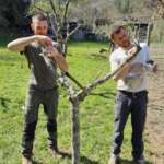 Sempre durante il corso, abbiamo recuperato delle marze di Belfiore, una varietà di mele che abbiamo innestato su un melo che da anni non produceva più frutti. Lo scorso anno avevamo lasciato appositamente le tre branche principali, per poterle innestare quest’anno. L’innesto, in questo caso, è stato a corona: un ramo con la varietà Belfiore, un altro con la Grigia di Torriana (le cui marze sono state coltivate alla Canera) e un terzo con entrambe le varietà, sperando in una buona resa.